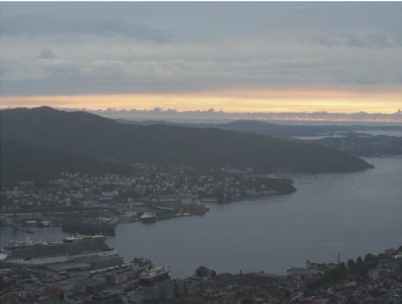 Mount Floyen is one of the 7 city mountains in Bergen and one of the city's most popular tourist attractions. Each day it was obscured by mist or rain, so we visited the other tourist attractions in Bergen.